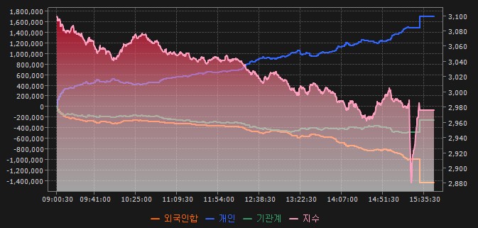 전일 미 증시상승에 이어 상승출발했던 코스피지수는 외국인 순매도가 연일 이어지며 지속적인 하락을 하여 최종 2,976.21p로 장을 마감했습니다.