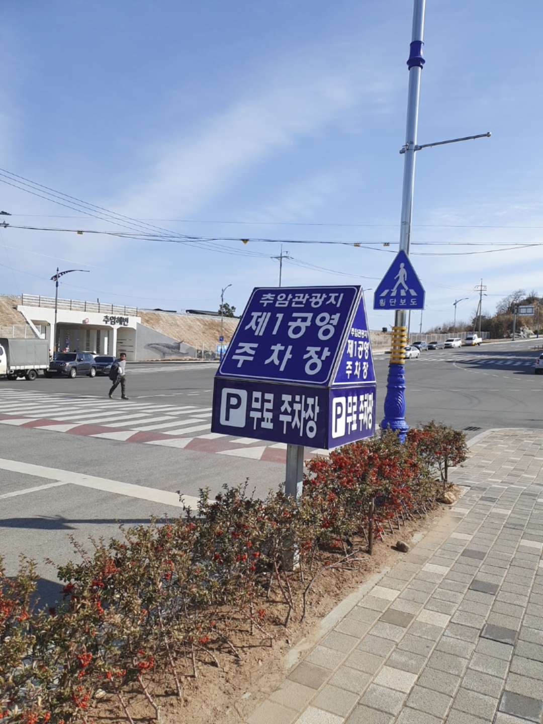 먼저, 추암해변내에 주차하는 곳이 10대내외로 협소하여 큰 길가 건너편 무료주차장을 이용하시고 건널목을 건너시면 됩니다.