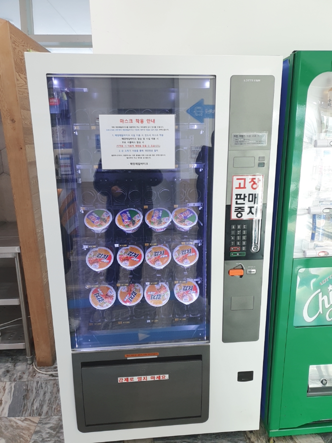 안에 컵라면이나 음료도 준비되어 있는데요. 현재 사회적거리두기 2.5단계로 취식 판매를 하지는 않습니다.
