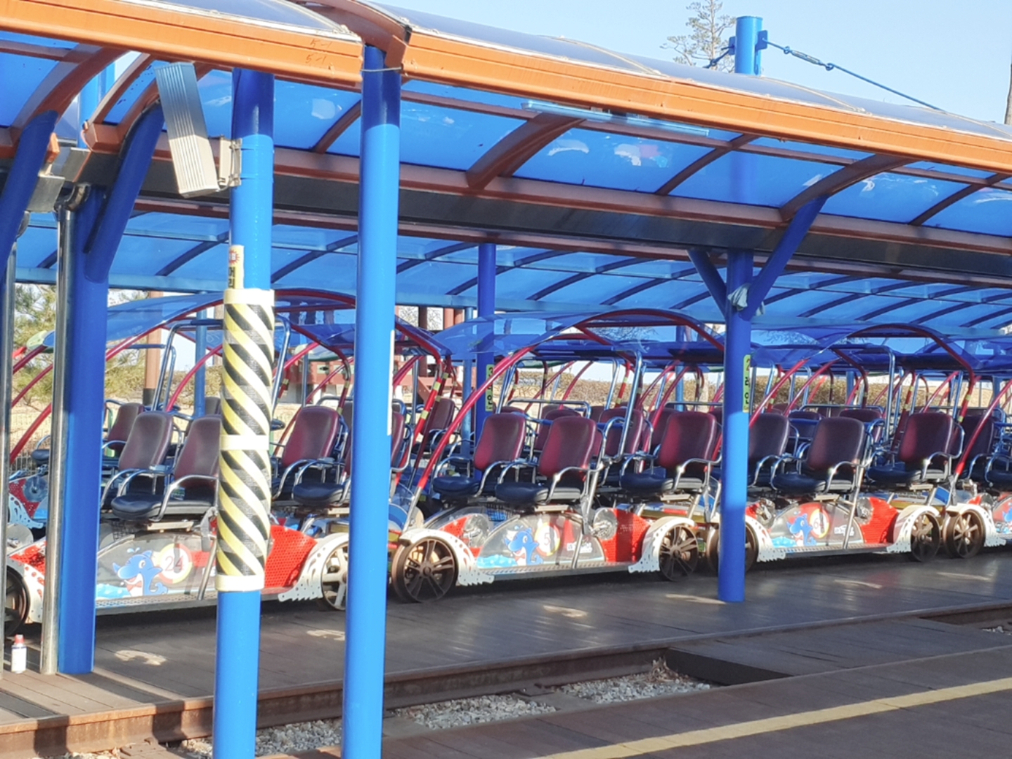 사진에 레일 중간에 전기로 가게해주는 장치가 마련되어 있습니다^^