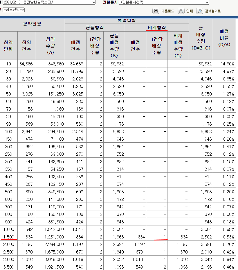 확실히 균등배정방식 도입으로 일반 소액투자자들도 공모에 참여할 수 있게되었네요.