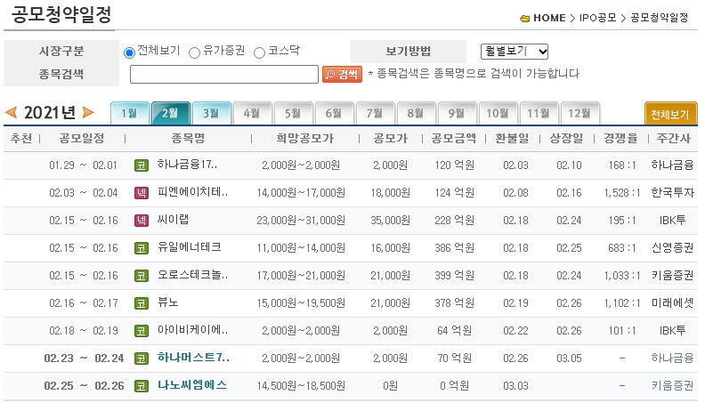 2월 초 ipostock.co.kr 또는 38.co.kr 공모청약일정을 참고