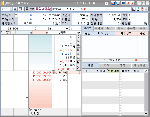 아침 8:50분. 공모가의 2배인 42,000원에 호가주문량이 어마무시합니다.