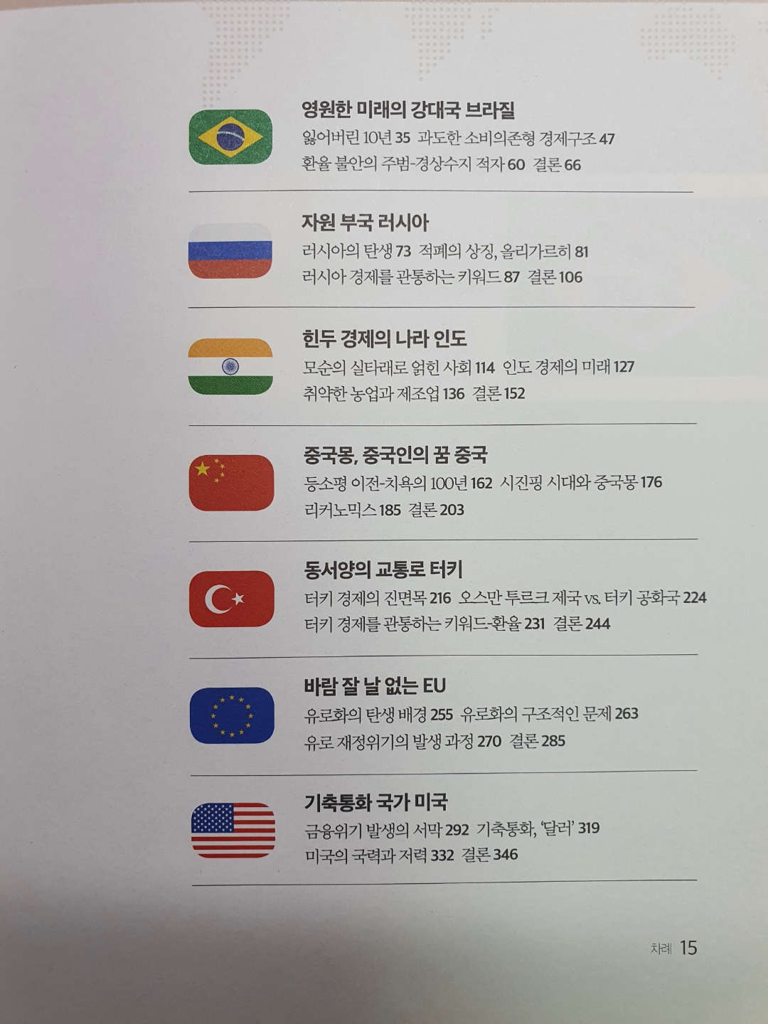 주요국인 브라질, 러시아, 인도, 중국, 터키, 유럽, 미국 7개국의 역사, 정치, 문화로 현 상황을 파악.
