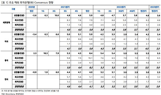 다만, 신흥국 코로나 백신접종 부진 및 전세계적 인플레이션 압력 부각은 세계경제 불안.