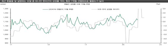2. 환율을 설명하는 모델, 수출 YOY와 성장률 격차