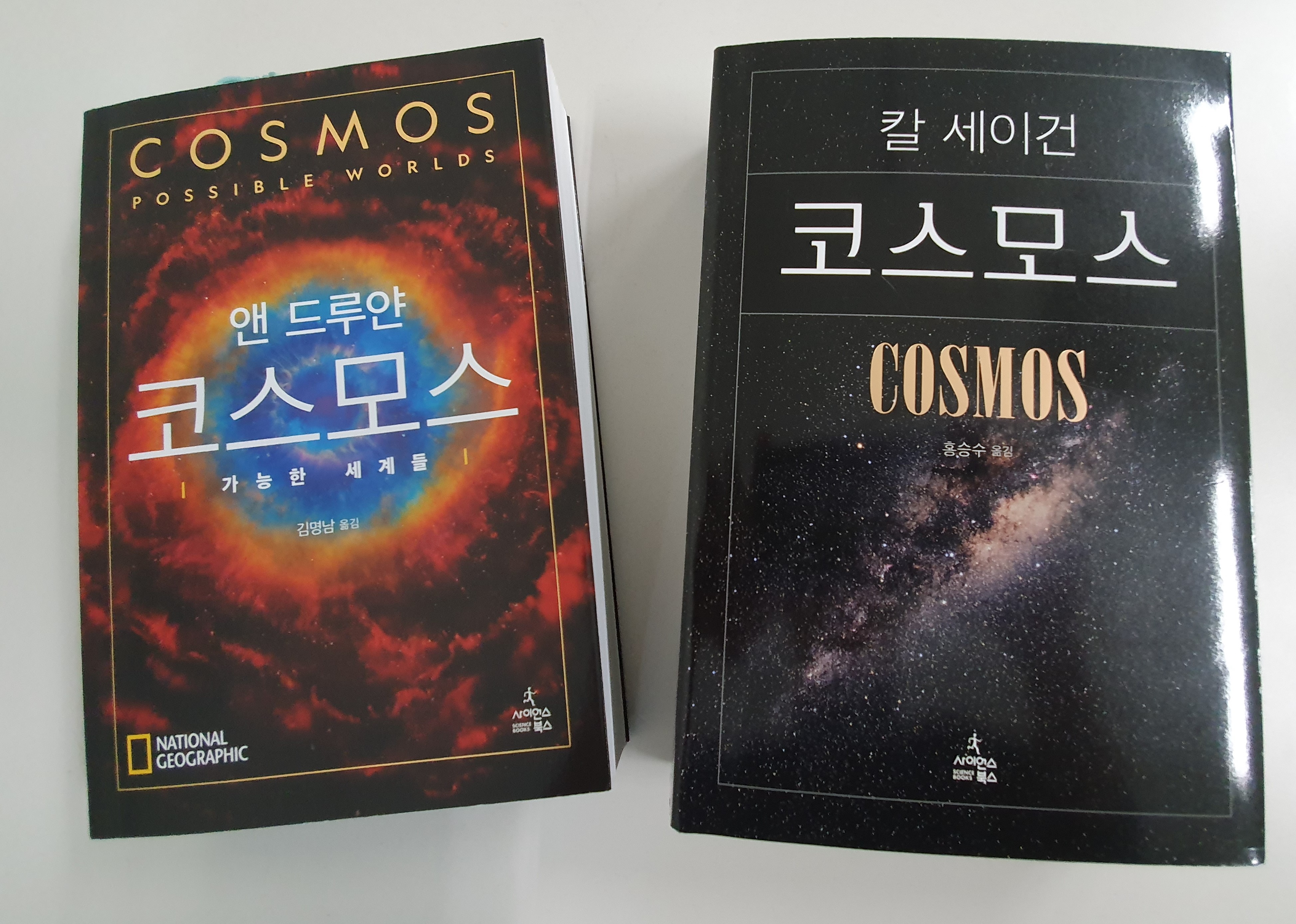 5G를 사용하며 빠르게 변화하는 시대를 살고있는 문과생인 나에게. 1980년대 책인 코스모스는 40년 전에 쓰여진 우주이야기? 별로 관심이 없었다. '책읽어드립니다'에서 '코스모스' 책 이야기를 듣고 조금 관심이 생긴찰나 2020.03월 앤 드루얀의 코스모스 책 발간소식을 듣고... 1980년대 책보다 사진도 많고 40년동안 발전된 내용도 훨씬 많겠다 싶어 신상 우주 이야기 봐야지. 싶은 생각에 책을 구매했다. 예스24의 판매스킬이란.. 칼세이건 코스모스와 묶음으로. 칼 세이건의 코스모스는 왜 이렇게 높은 평가를 받고 있나 궁금하여 같이 구매했다. 책을 받고 첫 인상 '음.. 책 페이지가 700??? 언제 다 읽지...'