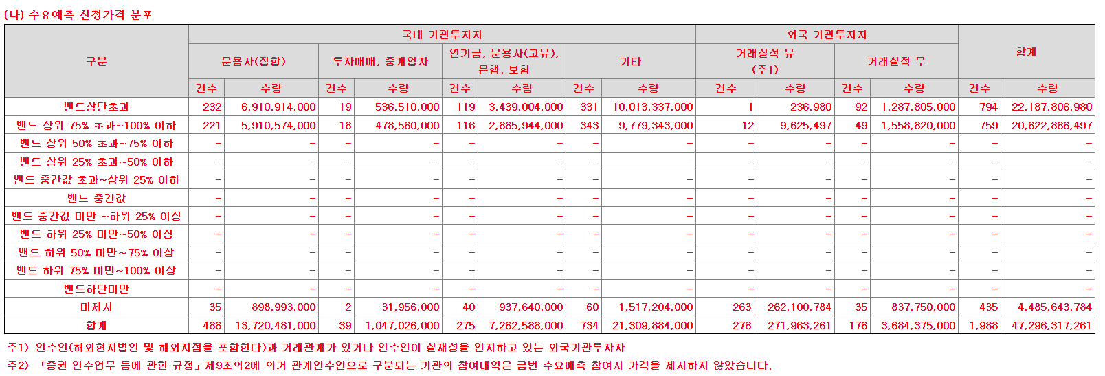 특징은 기관들의 확약비율이 상당히 높았습니다.