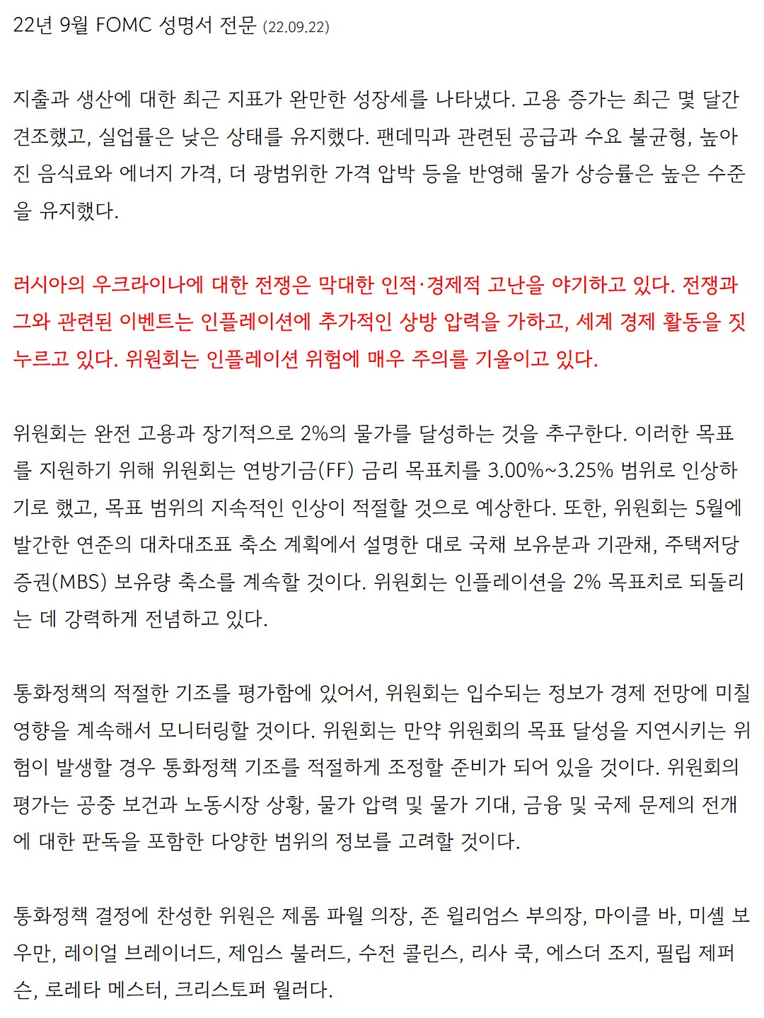 <파월 연준의장 발언>