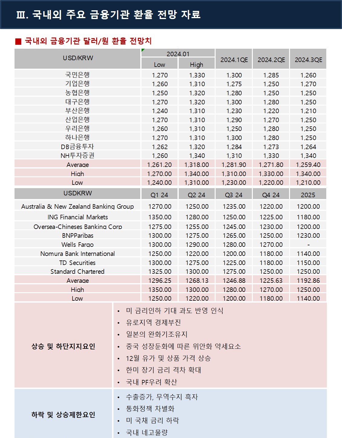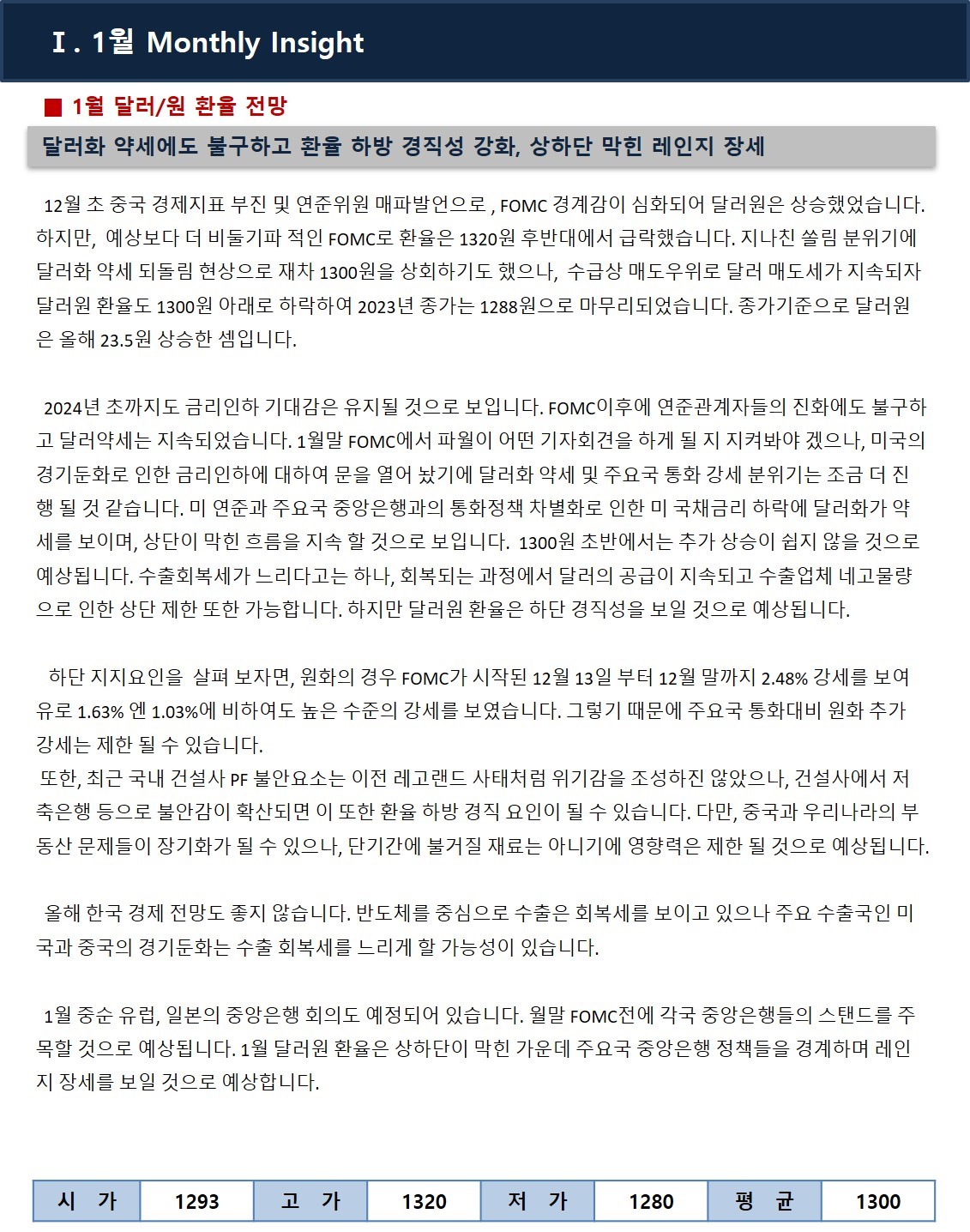 아래 1월 외환전망과 주요이벤트, 국내외 금융기관 환율전망치 3페이지 그림파일로 첨부드립니다. 업무에 도움이 되셨으면 좋겠습니다. 그럼, 즐거운 하루 시작하시길 바람니다. 감사합니다.