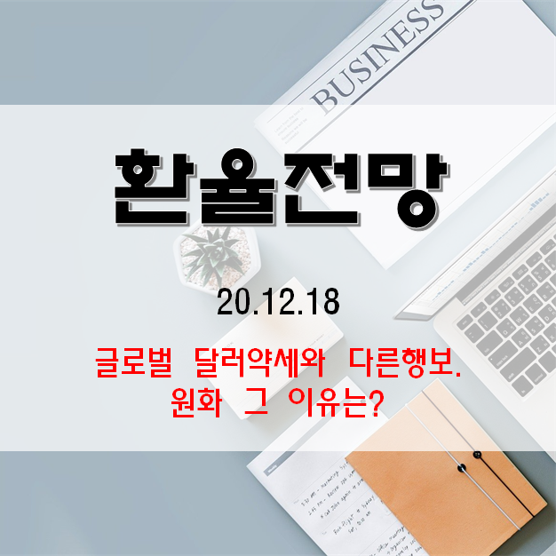 이는 2021년도 신흥국보다는 선진국에서의 경제회복이 더 빠를 수 있다는 기대감이 반영된 결과로 보여집니다. 또한 국내의 경우 코로나 확진자가 연일 1000명에 육박하며 사망자수도 늘고 있어 전일 발표한 기획재정부의 2021년 경제성장률 예상치인 3.2%가 회손될 우려가 있어보이는 점도 글로벌 달러약세에 편승하지 못하는 이유가 되는 것 같습니다.