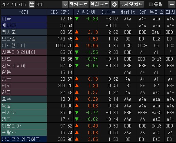 * 한국보다 낮은 CDS. 미국, 일본, 호주, 영국, 프랑스