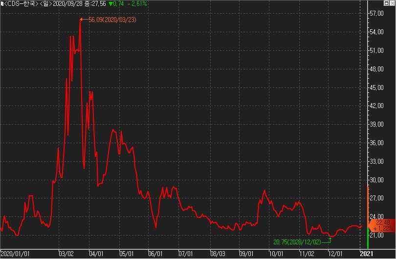 * 2020년 최저점은 20.75bp로 12월 02일 기록.