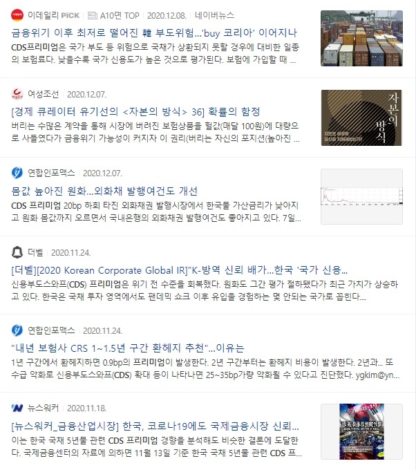 * 위험지표인 CDS프리미엄은 뉴스에소도 자주 등장하는 지표