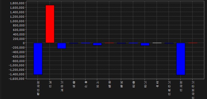 최근 국내 증시에서 개인이 순매수를 많이 이어가고 있는데요. 금일도 +1.7조원을 매수하며 외국인 -1.4조원, 기관 -0.25조원의 매도를 커버하며 하락폭을 제한한 것으로 보여집니다.