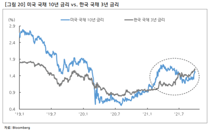 2022년 하반기 기점으로 미 중장기 금리인상 사이클 진입예상. 특히, 비둘기적 연준 분위기에도 인플레이션 리스크 감안시 금리인상 속도가 빨라질 가능성 상존