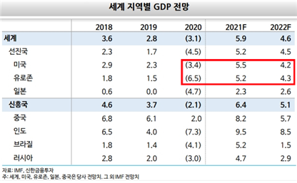 유로존 GDP 4.3% EU회복기금 집행과 맞물려 투자지속 / CPI 2.0% 위드코로나 수요압력