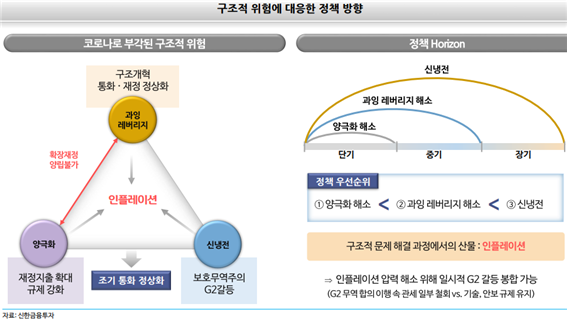 양극화 해소를 위한 확장재정기조 + 플랫폼 규제강화(순기능 훼손) -> 물가상승압력