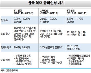 2000년대 이후 3차례 인상. 경기 및 자산가격 과열 제어 내외 금리차, 인플레이션 고려