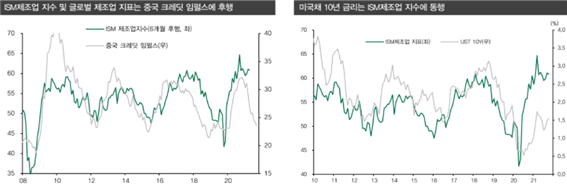 미국채 10년은 ISM제조업 지수와 동행하는 경향