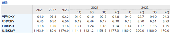 주요 선진국과 미국의 경기회복 속도 및 통화정책 기조에 차이가 발생하면서 2022년 미국 달러화 가치는 강세를 나타낼 전망
