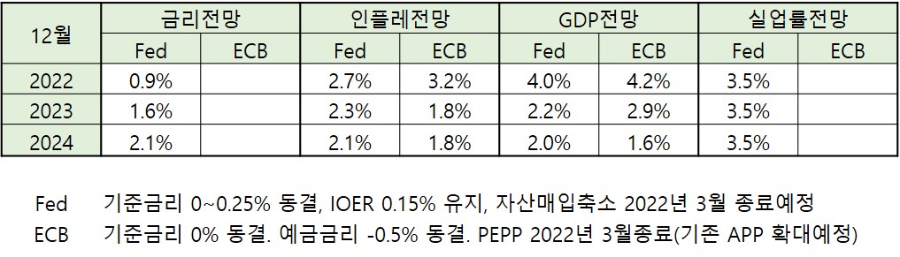 달러환율전망 "2022년 Fed, ECB 전망비교"