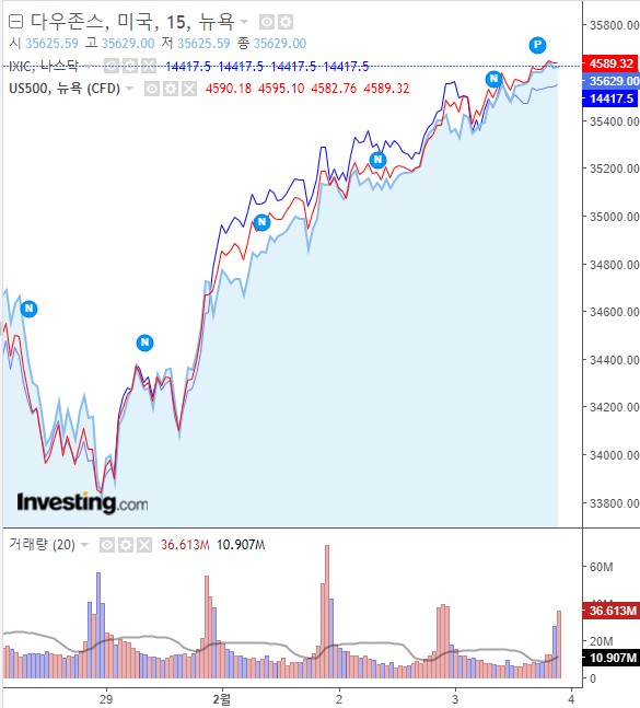 필라델피아 연은총재는 "3월 회의에서 50bp금리인상할 가능성에 대한 확신이 덜하다"는 발언을 하였고. 샌프란시스코 연은총재는 "3월 금리인상은 지지하지만 이후 점진적으로 해야한다"고 발언하였습니다. 보스틱 연은총재와 블라디 연은총재도 50bp 금리인상에 대한 부정적인 의견을 보이며 공격적인 통화정책에 반대하는 스탠스를 보였습니다. 이에 화답하듯 미 증시는 4거래일 연속 상승하며 +5%내외의 상승세를 보여줬습니다.