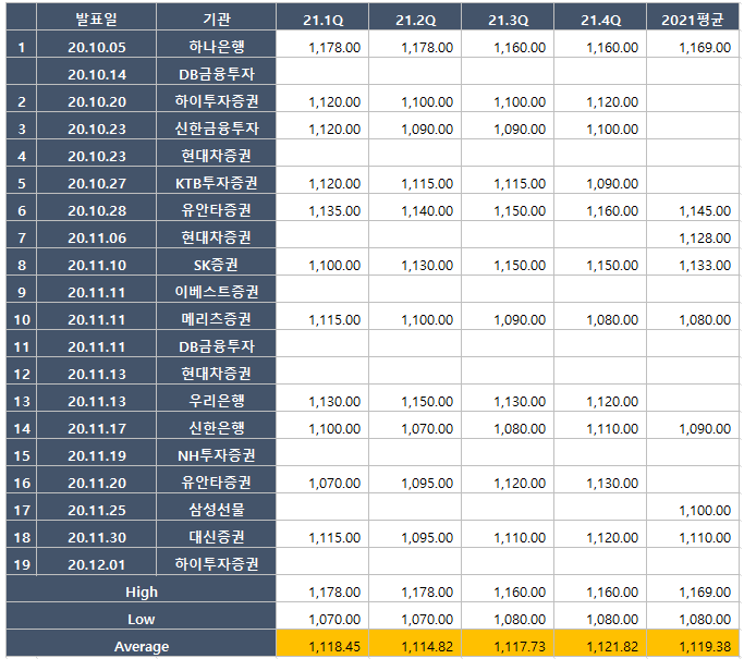 이중 20.10.14일 DB금융투자 보고서는 요약본만 있고 포스팅은 하지 않았습니다.