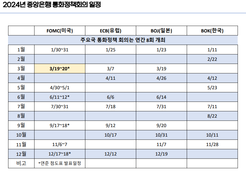 향후 2024년 주요국 중앙은행 통화정책회의 일정도 첨부드립니다.
