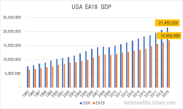 1. 미국, 유로존19 GDP규모 비교