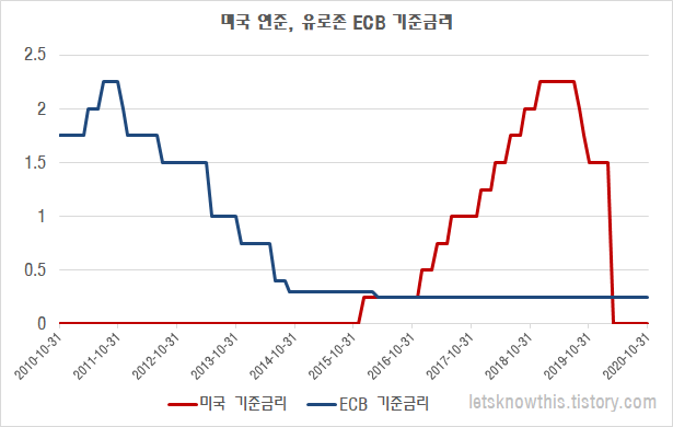2. 연준, ECB 기준금리 비교